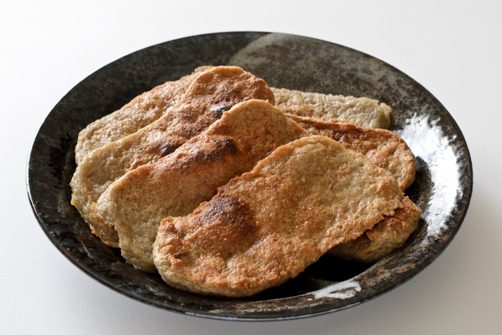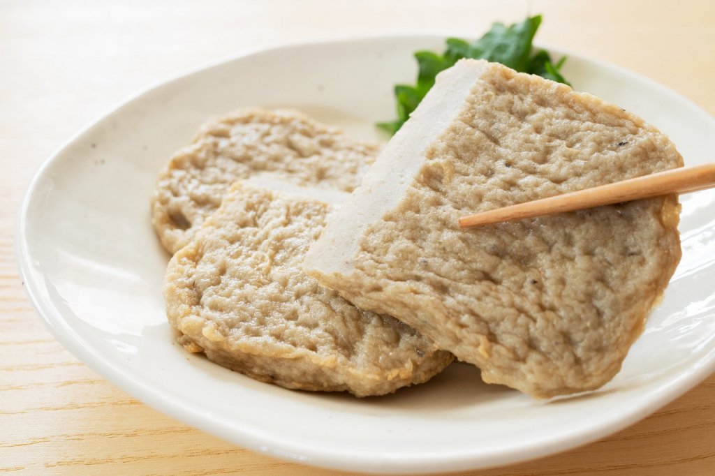 Jakoten is a famous fish paste product from Ehime, made by grinding fresh small fish from the Uwakai Sea, along with its skin and bones, into a paste, then deep-frying it.