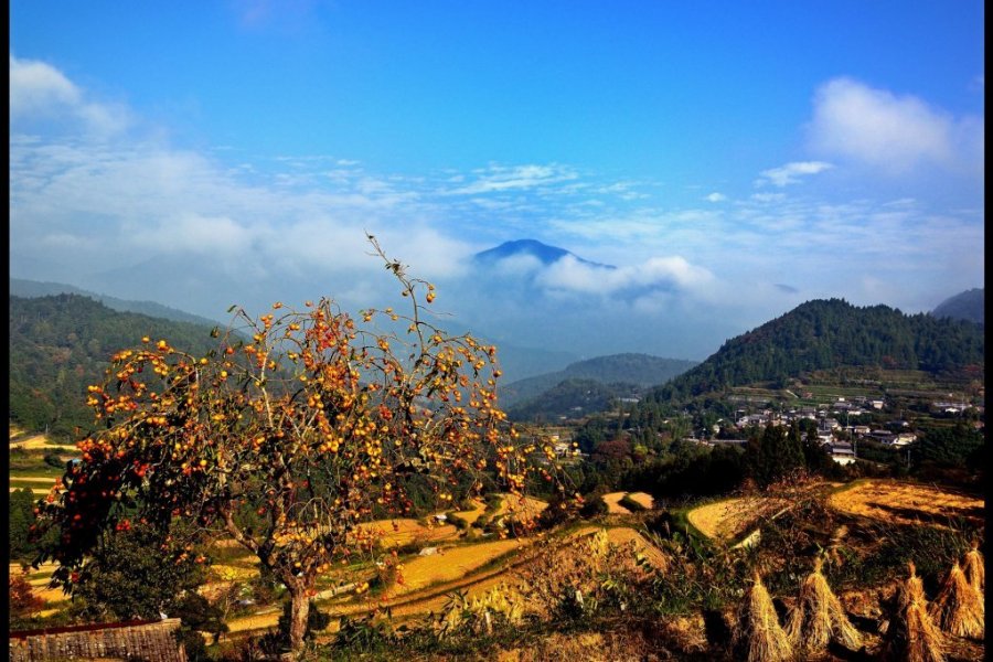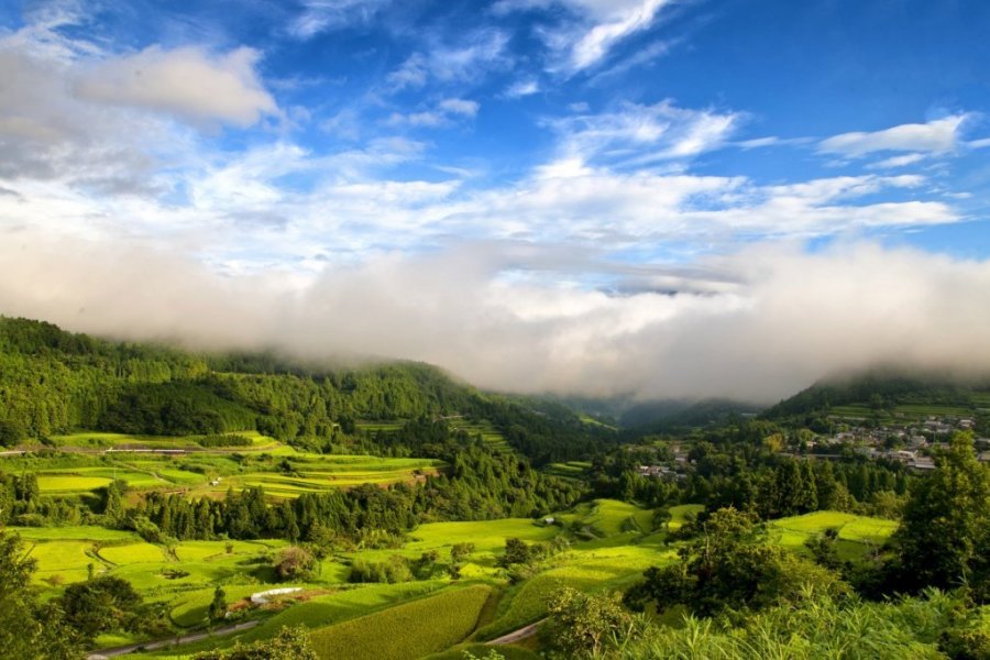 This is a spot where you can see terraced rice field art and have a panoramic view of the Yoshinobu Rice Terraces and Oishi districts of Motoyama Town.