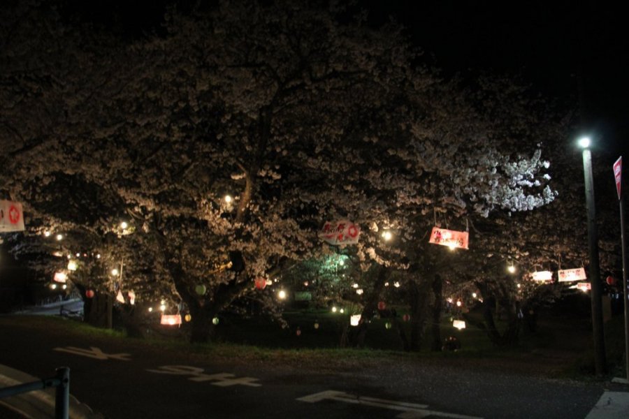 88 Somei Yoshino cherry trees planted in 1955 (Japanese Showa Era) are blooming. The reflection of the cherry blossoms on the water is a spectacular view.