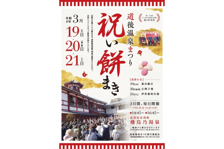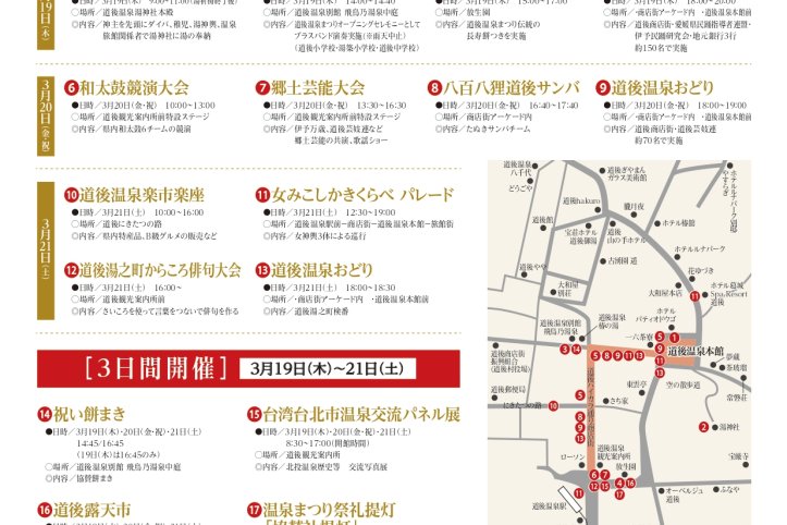 | 電話番号 | 089-943-8342(道後温泉まつり実行委員会(道後温泉旅館協同組合)) |