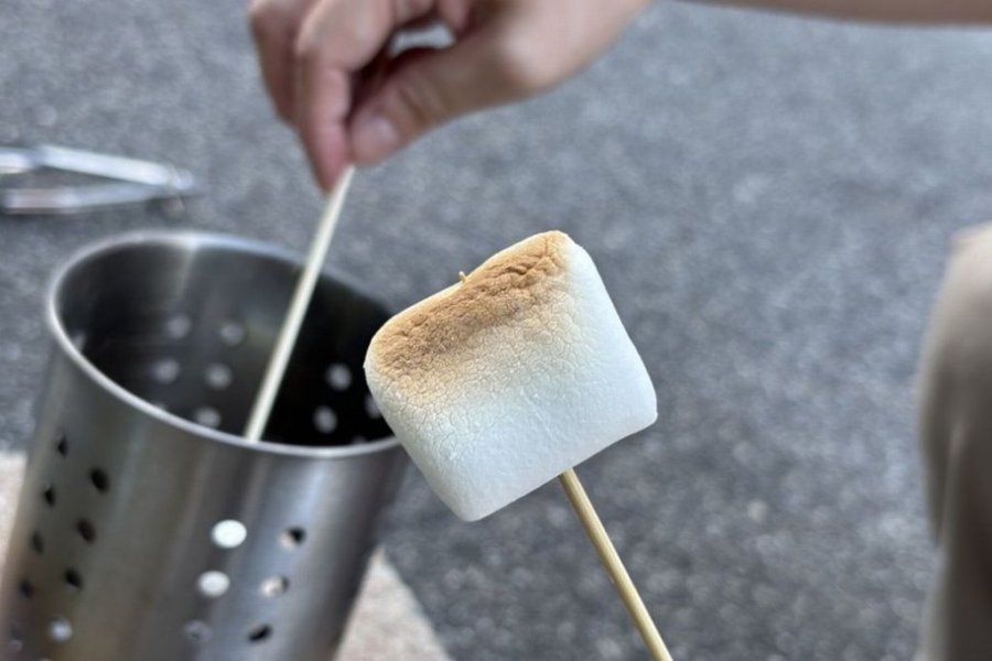 博物館ロータリーで、焚き火台でマシュマロを焼いて食べよう!