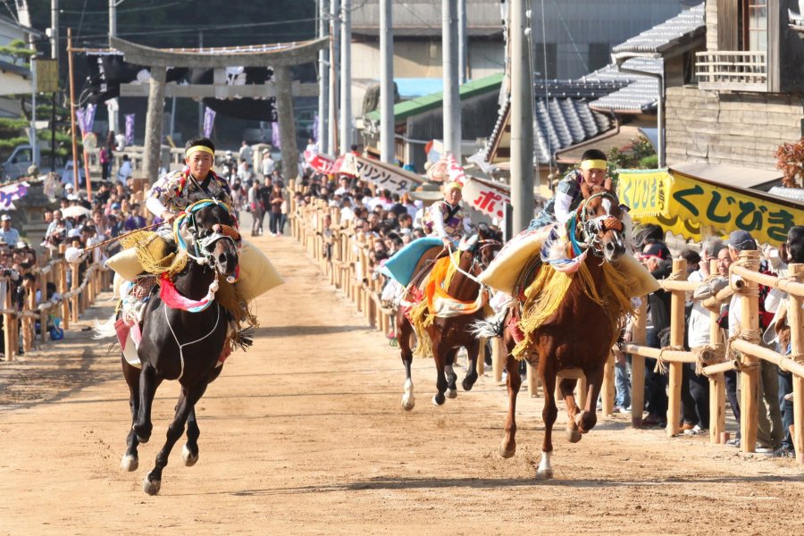 【地元チーム「ひめ旅部」が解説!】今治市菊間の600年続く伝統行事「お供馬の走り込み」と神輿や牛鬼などが練り歩く「菊間祭」