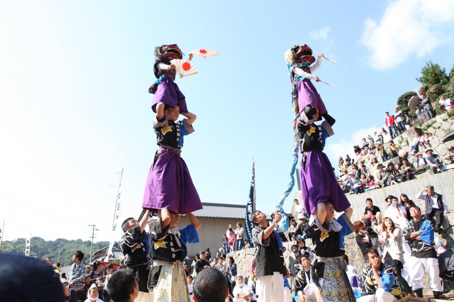 家内安全・五穀豊穣を祈願して行われるこの行事は、愛媛県無形民俗文化財に指定されています。