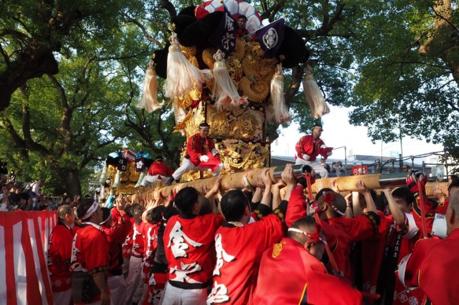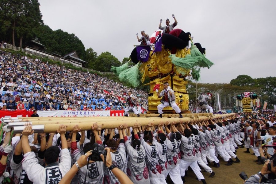 高さ約5.5m、重さ約3トンの太鼓台が市内を勇壮に練り歩く、愛媛を代表する祭りの一つ。最大の見どころである「かきくらべ」が各地区で行われ、躍動する太鼓台に多くの観衆が酔いしれる。「ソーリャ、ソーリャ」の掛け声で担ぎ手たちが息を合わせて太鼓台を頭上に掲げる「さしあげ」が行われると、観衆から大きな歓声が湧き起こり祭りの会場が一体感に包まれる。
