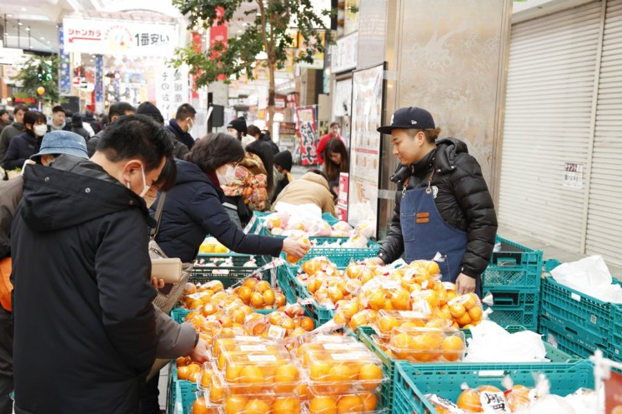 1月31日から2月21日までの毎週土曜日は、旬の愛媛県産食材が並ぶ「市場」が松山市内中心部・大街道商店街に出現!