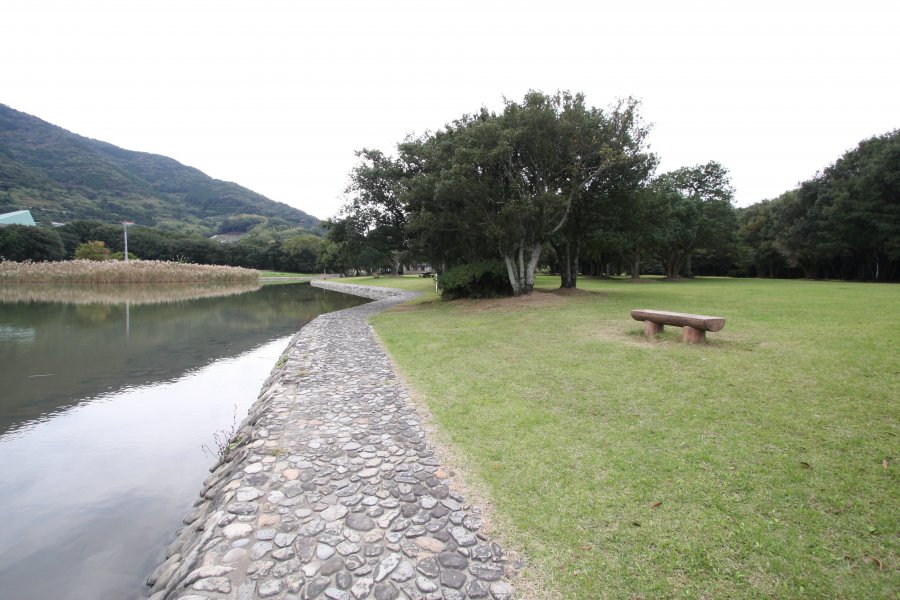 国道56号線沿いに位置する、まるで「天の橋立」のような自然公園。広大な園内には、南国を思わせるウバメガシの群生林や、サンゴが群生する海岸線、木漏れ日が差し込む芝生広場、多くの野鳥の姿が見られる海水池と淡水池など、清々しい景観が広がっている。また、周囲には「日本の渚100選」に選定されている須ノ川海岸やキャンプ場などがあり、夏には多くの人で賑わいを見せる景勝地となっている。