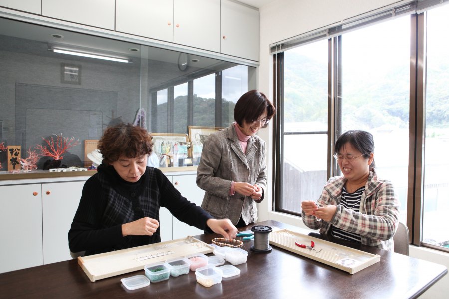 プロの指導を受けながら自分だけのオリジナルアクセサリーが制作できる施設。色とりどりの天然石やビーズなど、多数の種類が用意されており、真珠と組み合わせて好みのデザインアクセサリーが制作できる。季節により作業内容が変わる養殖場の見学が可能。(※時期によりお断りする場合があるため、事前に要問い合わせ)養殖から販売まで行っている真珠屋だからこそできる体験メニューが用意されている。