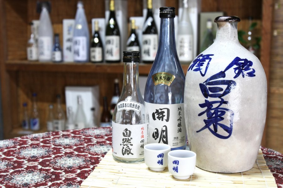 江戸時代からの古い町並みが残る宇和町中町の通りに面した老舗酒屋で、仕込蔵は安政の頃、前蔵は寛政の頃に建てられ、築約200年以上を経た蔵で今も昔と変わらぬ酒が造り続けられている。当時のまま残されている帳場や土壁からは芳しい酒の香が漂い、蔵の中を山からの風が通り抜ければ、また、酒の香が漂う。代表銘柄である「開明」は自家栽培の山田錦を使用したものや、合鴨農法で育てられた無農薬の酒米を使用したものなど種類も様々。無料の試飲コーナーで好みの酒を探すこともできるので、ぜひ自分にあった逸品を見つけてもらいたい。