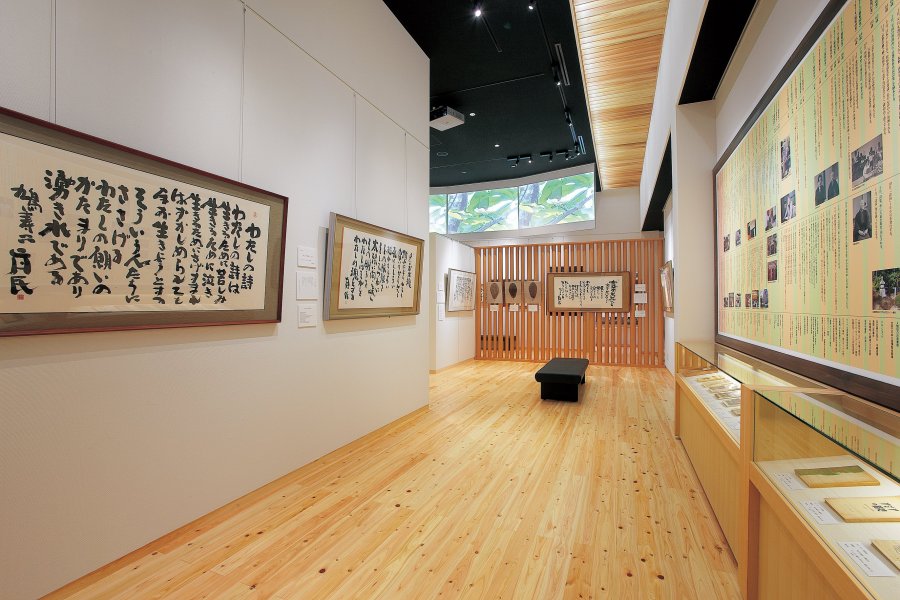 「念ずれば花ひらく」で知られる癒しの詩人・坂村真民の作品などを展示・紹介している記念館。館内は、広々とした第一・二展示室を始め、復元された書斎や情報コーナー、ミュージアムショップなどに分かれており、坂村真民の世界を存分に堪能することができる。人としての生き方を詠った作品の言葉は、諭すように優しく、時に厳しく、観る人の心に響き、清々しい気持ちにさせてくれる。