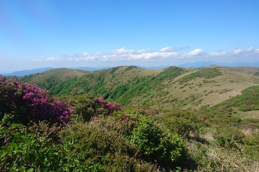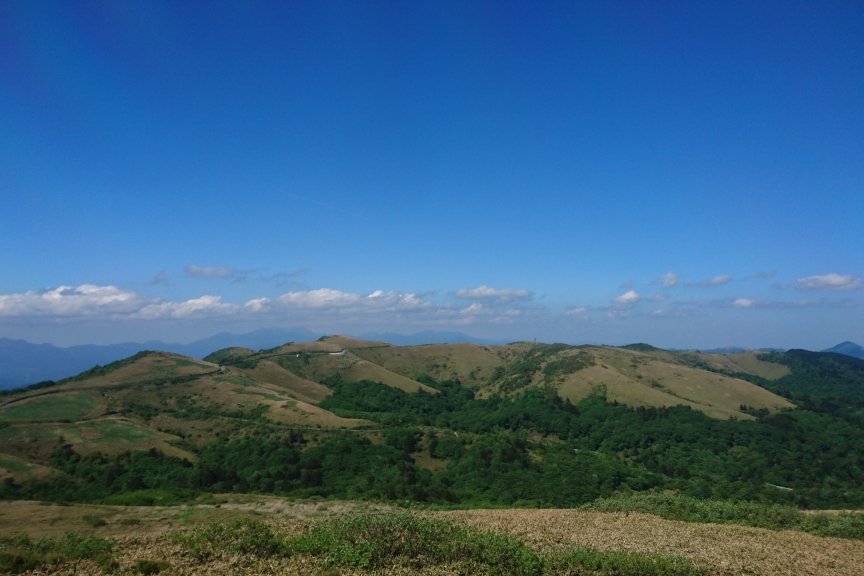 日本三大カルストの一つである四国カルストの北部に位置する酪農地帯。大川嶺の中で最高峰の笠取山(1562m)を始め、大川嶺や美川嶺、ウバホド山と複数の山頂が、雄大でなだらかな稜線で繋がっている。春には三葉ツツジの赤紫色の花が尾根一帯を鮮やかに彩り、5月から10月にかけては牛が放牧された牧歌的な風景が広がる。また、山頂部からは石鎚山や佐田岬半島までも望むことができ、爽快に吹き抜ける風を全身で感じながら眼下の絶景を一望することができる。