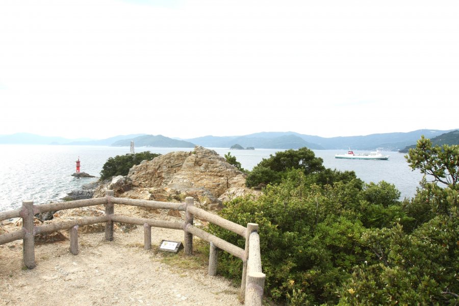 宇和海に向かって延びる全長約3kmほどの半島で、「日本の森林浴の森100選」や「四国の自然100選」などに指定されている。駐車場から約2km続く遊歩道には、桜やツバキなど四季折々の花が咲き、大自然を全身で感じることができる。先端には、白亜の魚霊塔と真っ赤な灯台が建ち、目の前に広がる宇和海や島々の風景をさらに引き立てている。また、様々な種類の野鳥が生息しており、四季を通じて小鳥のさえずりが聴こえる。#絶景