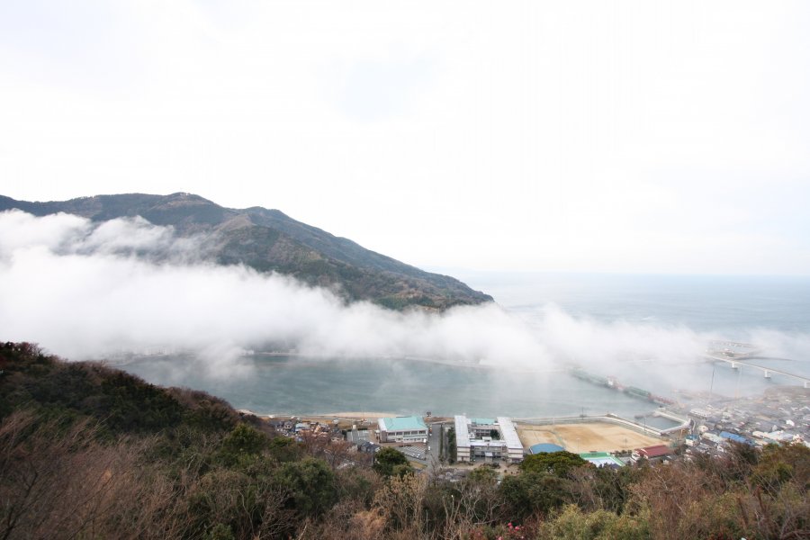 河口に架かる現役で動く日本最古の道路可動橋「長浜大橋」や気象現象「肱川あらし」などを見ることができる展望公園。ここでは、秋頃から冬の朝方にかけて、一定の気温気圧の変化が重なったことにより発生する、世界的にも珍しい「肱川あらし」と呼ばれる現象が起こる。肱川あらしは上流の大洲盆地から海に向かって霧を伴う冷気の強風が肱川沿いを下り、冷気と水温の温度差がさらに蒸気霧を発生させながら一気に海へ流れ出す現象で、霧が町をのみ込み蒸気霧が海へと扇状に広がる様子は、自然が創りだす壮大な光景となっている。
