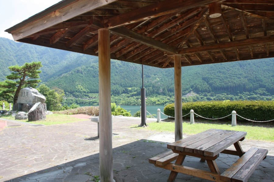 富郷ダムを建設する際にできた人造湖である法皇湖を中心に、自然と歴史に触れ合うことができる広場。銅山川の歴史や富郷地域に関する資料を展示する「てらの水のやかた」を始め、地元で採れる食材を使った料理が味わえる「湖畔のやかた」、法皇湖を一望できる休憩所などがあり、富郷地域の魅力が存分に詰まった場所。広場内には、古民家細川家も移築されている。