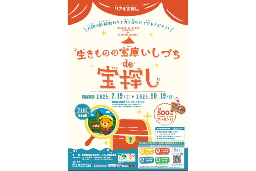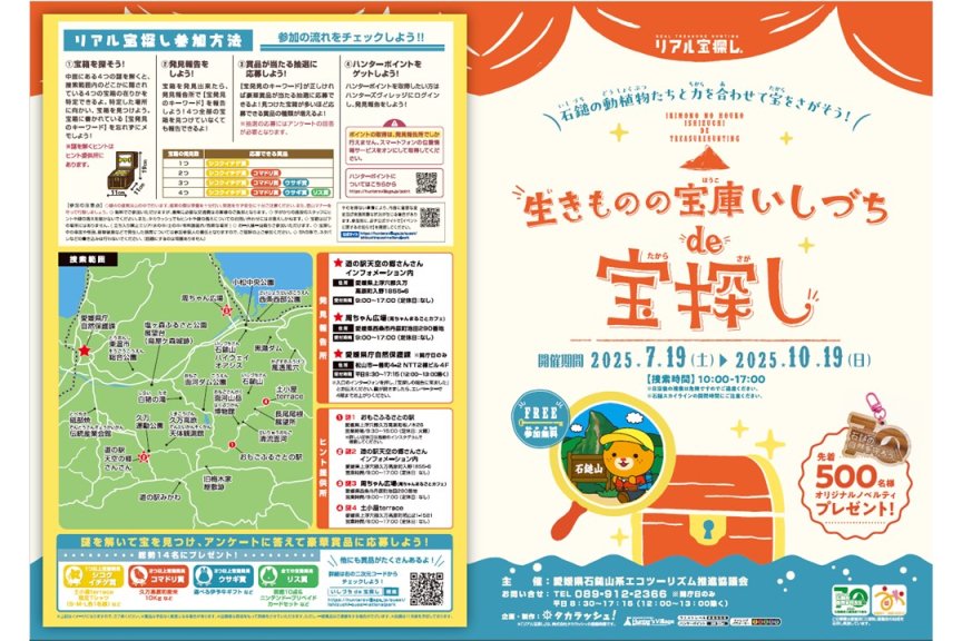 生きものの宝庫いしづちde宝探し 石鎚国定公園は指定されてから今年で70周年を迎えます!!これを記念して石鎚エリア(久万高原町、西条市)で謎解き宝探しを開催中です!!謎を解き各地に散らばった宝箱を見つけてみてください♪宝箱を発見したら素敵な賞品がもらえるかも!? エリア 愛媛県東部 カテゴリ フォトツアーを見る 公式サイトはこちら