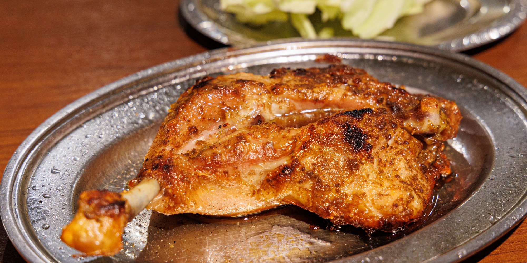 所以,帶骨雞腿的野性風格正是這道美食的魅力所在。燒烤一隻完整的雞腿,外側的雞皮又香又酥脆,加上秘傳的蒜味辛香料,每咬一口就不斷流出的鮮嫩肉汁,吃過一次肯定就會愛不釋手!快試試豪邁地大快朵頤一番!